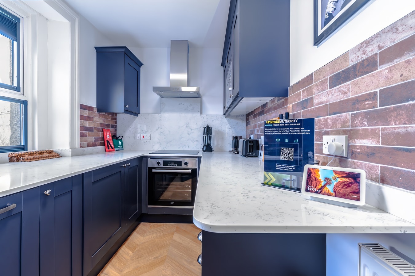 Inside, you will find a comfortable space designed for short breaks and longer work stays. Guests often comment on how clean and well presented it is, and the kitchen is genuinely set up for real cooking, with an oven, hob, microwave, dishwasher, fridge freezer, cookware and dining space for relaxed meals.