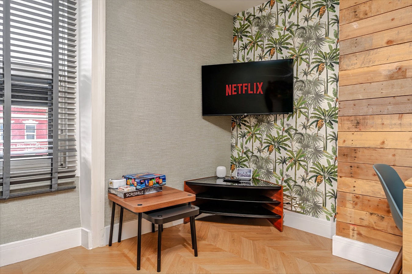 Working or studying here is simple thanks to fast Wi Fi, a dedicated desk and a supportive chair. Although the building sits on a lively main road, the bedroom is positioned to the rear, with room darkening shades to help you sleep well.
