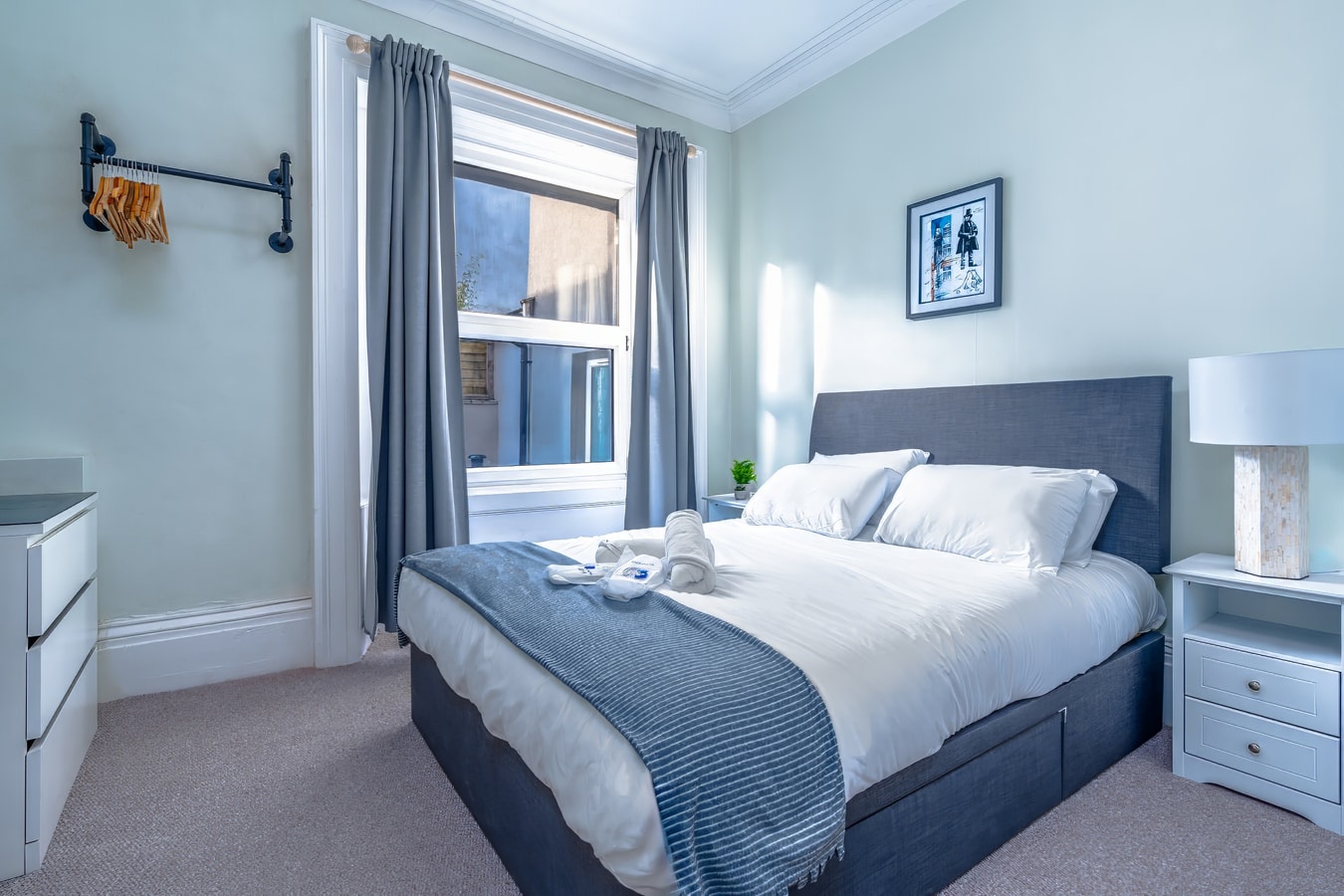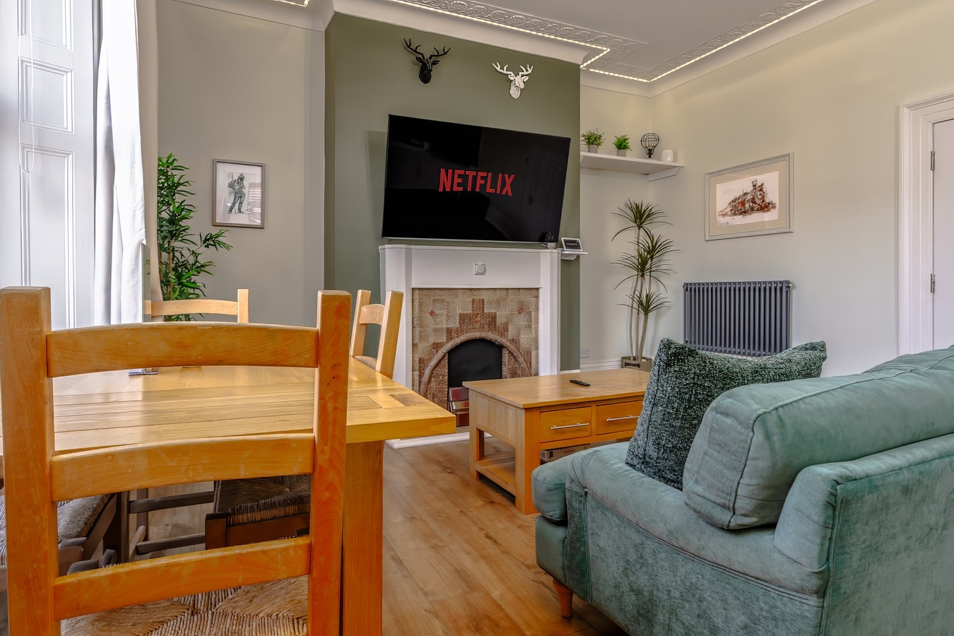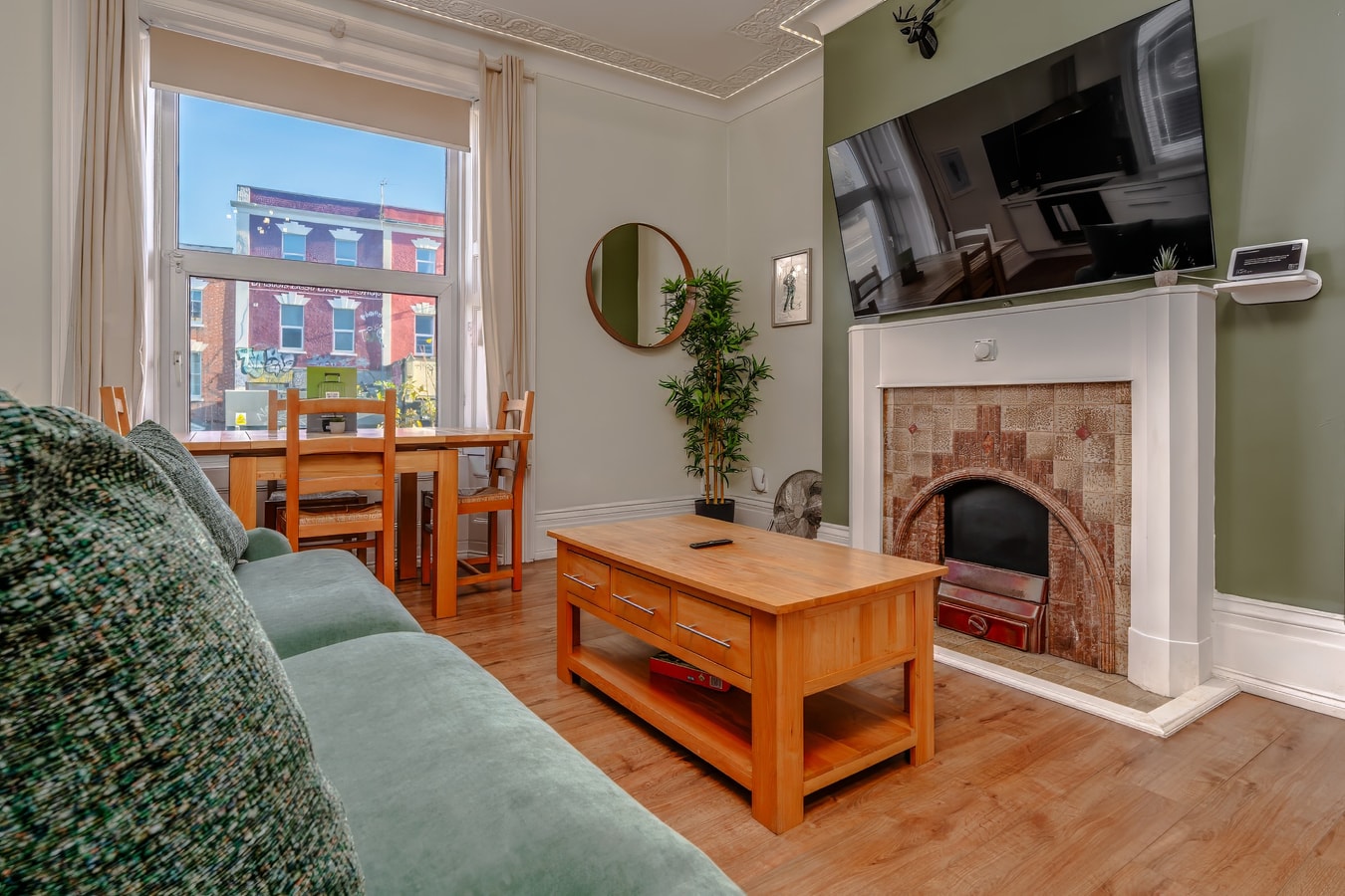 Inside, you will find a bright, thoughtfully styled space that feels both modern and lived in. Guests often comment on how clean the flat is, and the kitchen is a real highlight: fresh, spotless, and fully equipped for proper cooking, whether you are here for a couple of nights or settling in for a longer stay.