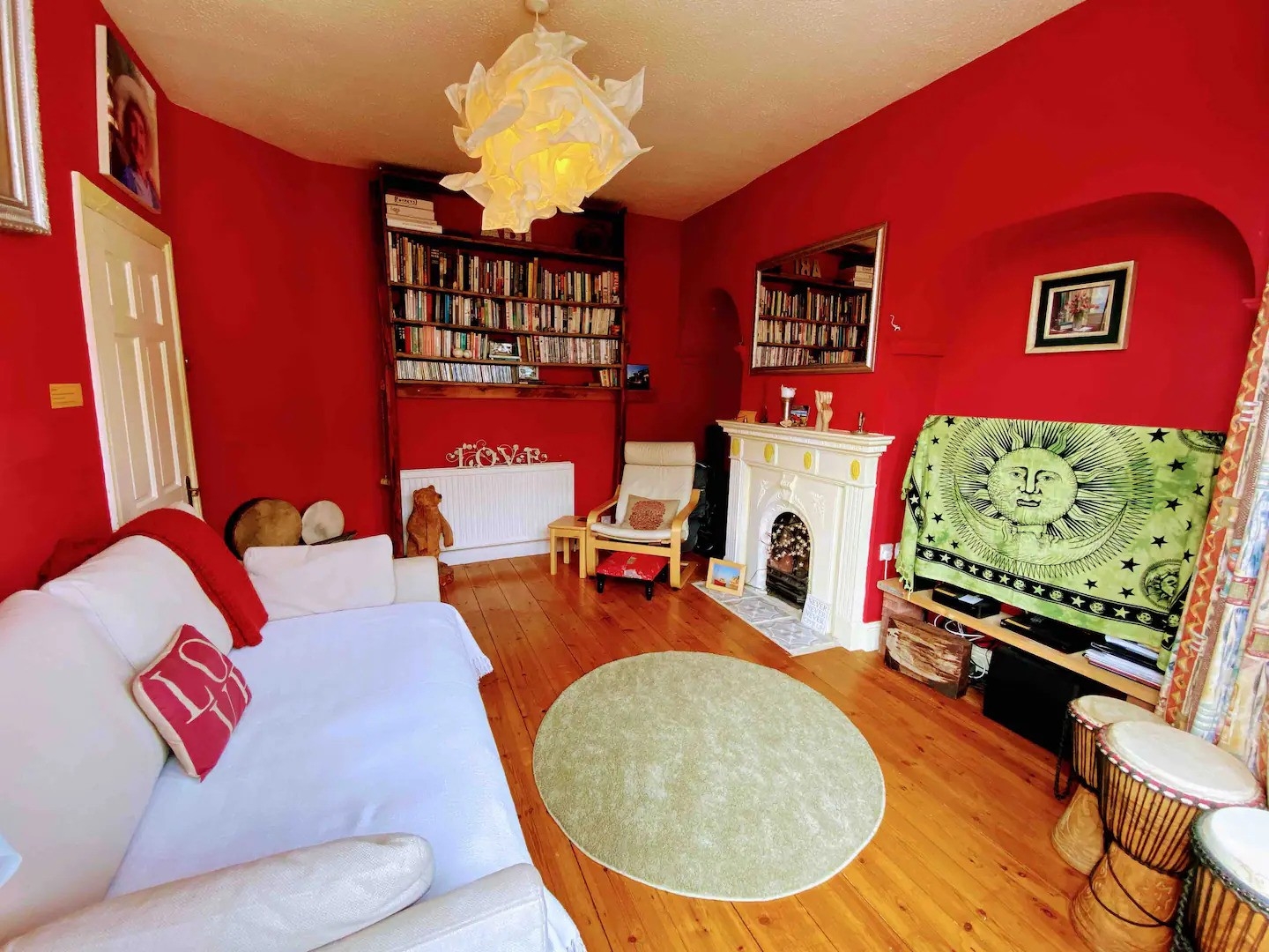 Enter through the bright red front door into a welcoming vestibule and hallway, setting the tone for this characterful Victorian cottage.