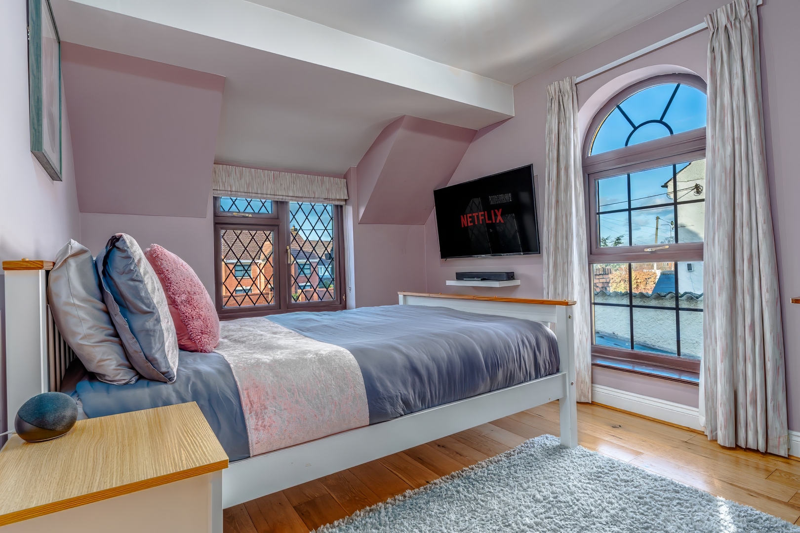 Sleep well in a king size bedroom and two doubles. Bedrooms two and three include desks for work and TVs. There are two bathrooms with a main shower room upstairs and a handy WC on the ground floor. Fast Wi Fi keeps everyone connected.